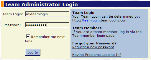 Please select your name and enter in your password. If you are having trouble logging in, or do not know your password, please contact your team administrator.